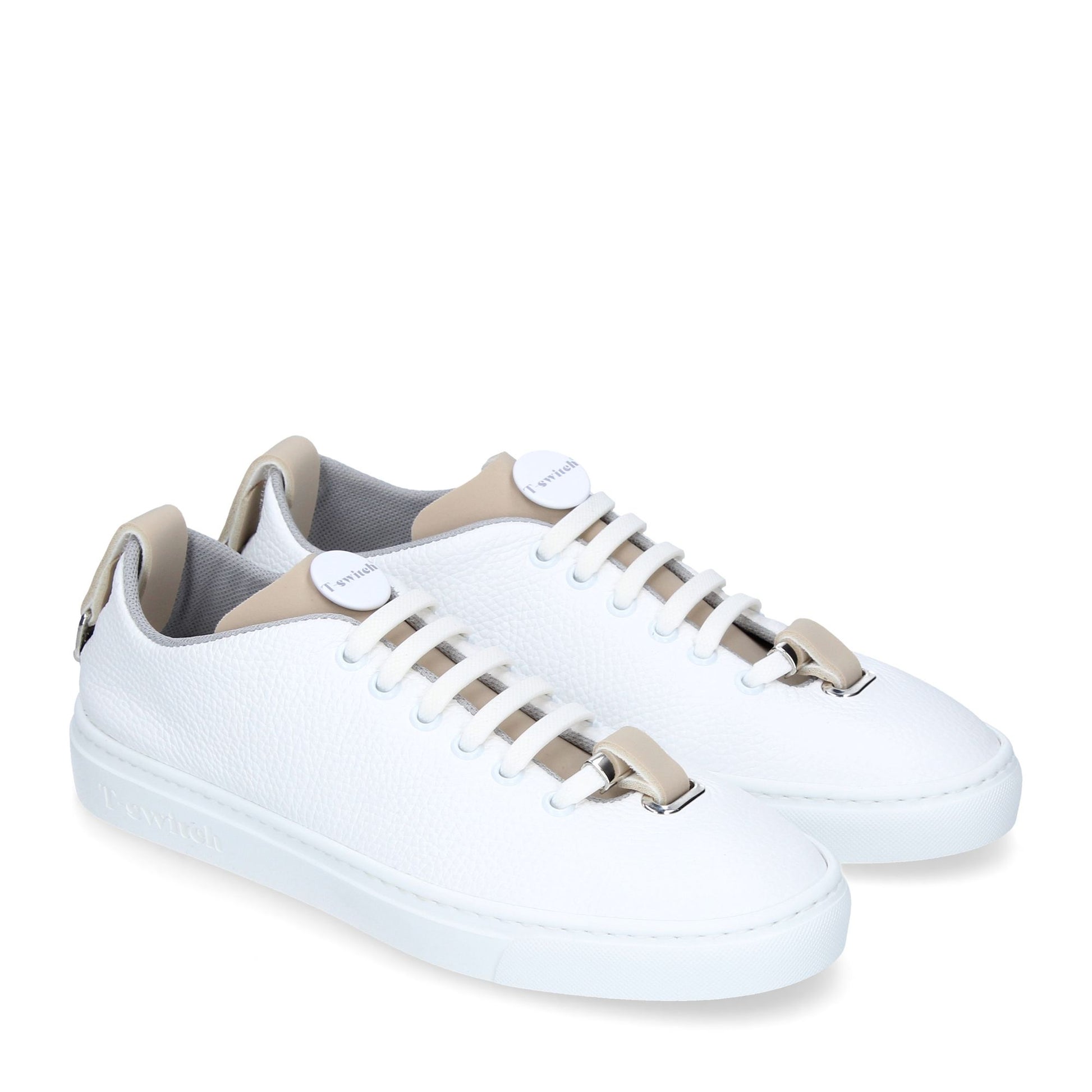 Le T-Switch con il T-Kit Beige sono la scelta ideale e versatile per chi desidera un look sofisticato ma discreto. Linguette e cinturini in queste nuances aggiungeranno un guizzo modaiolo ai tuoi outfit quotidiani o per rendere speciali le tue uscite serali. Con il T-Kit Beige, la tua sneaker raggiunge un livello inedito di opulenza.
